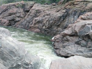 Mekedatu is a Kannada word which means “goats leap.” From this point, about 3.5 km downstream, Kaveri river runs through the deep valley. The name is originated from the story which is believed to be from ancient times, a goat was chased by the tiger, in an attempt to save its life, it leaped afar the valley and succeeded to cross the river. There are traces of goats’ paw marks of larger size which can be seen on the rocks.